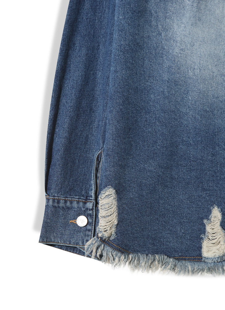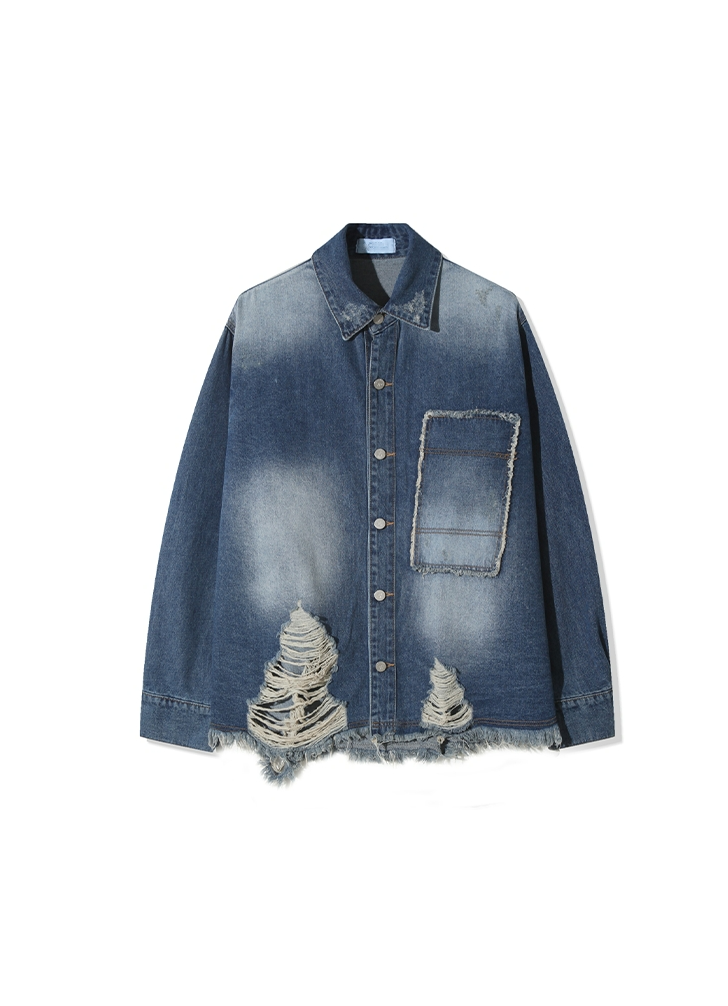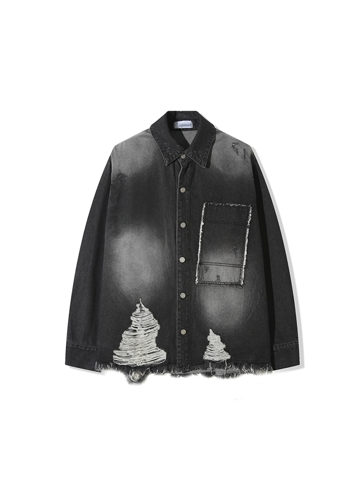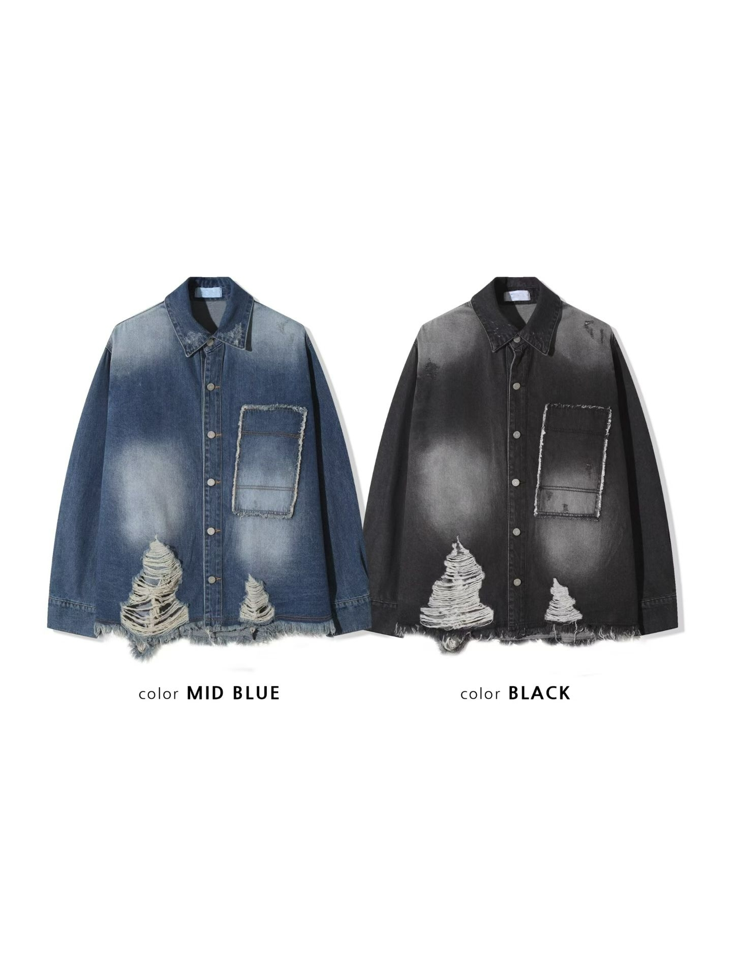 正韓重磅破損丹寧外套 中性落肩 做舊刷色 黑/藍