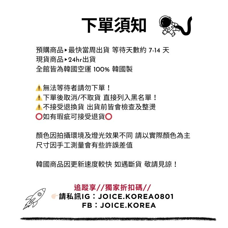 • 韓國商品售出後除重大瑕疵不接受退換貨