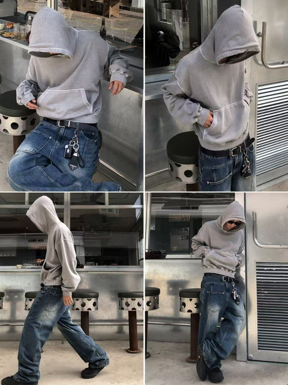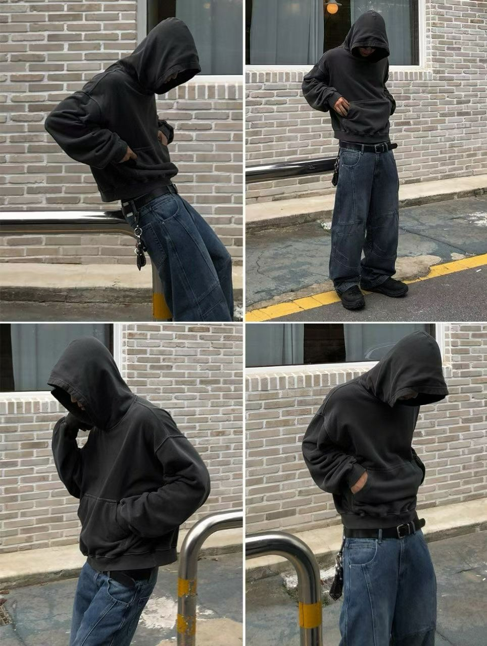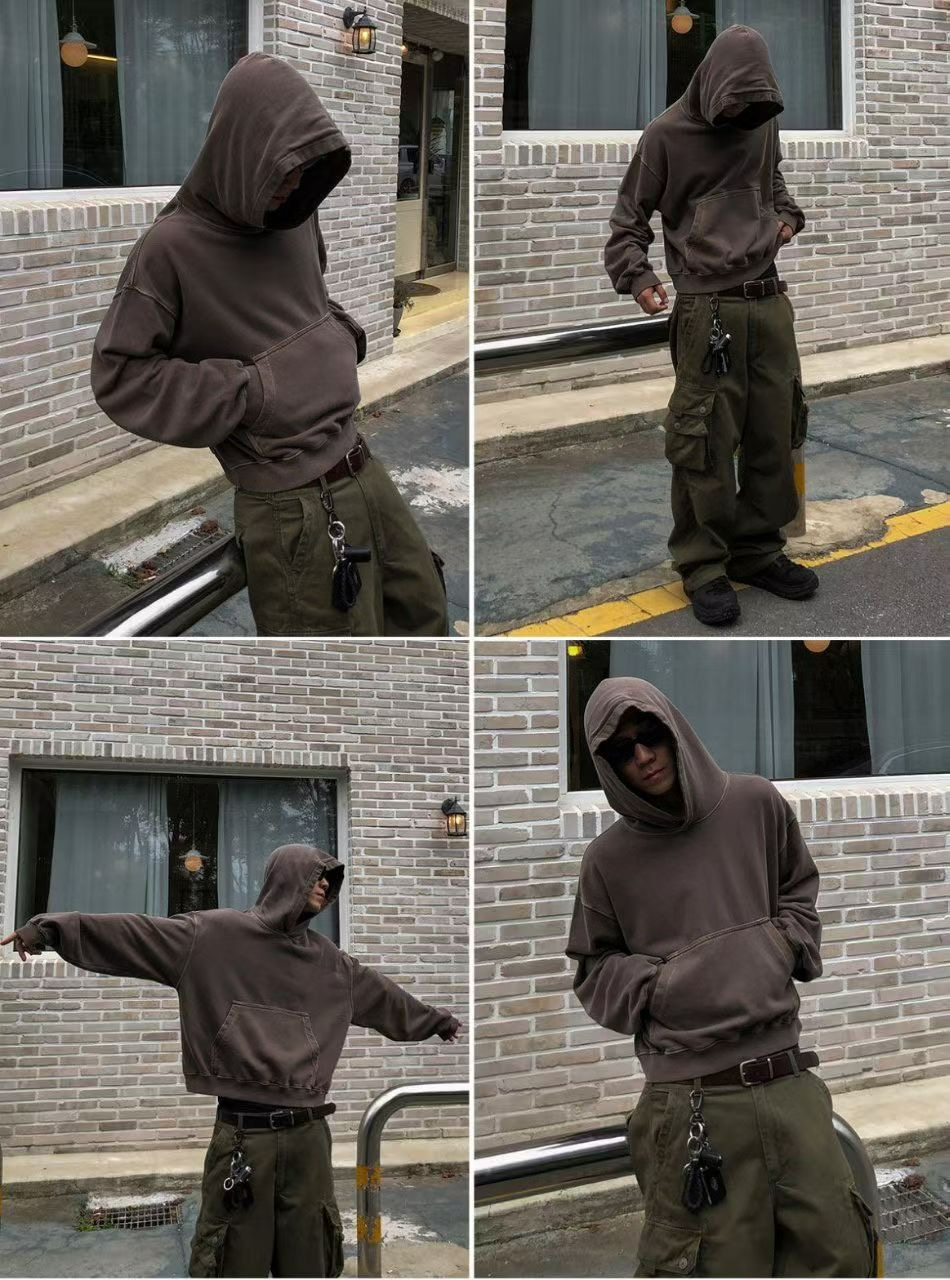 【正韓】素色復古刷舊連帽衛衣|寬鬆落肩帽T|街頭休閒百搭|日常百搭,極簡必備。