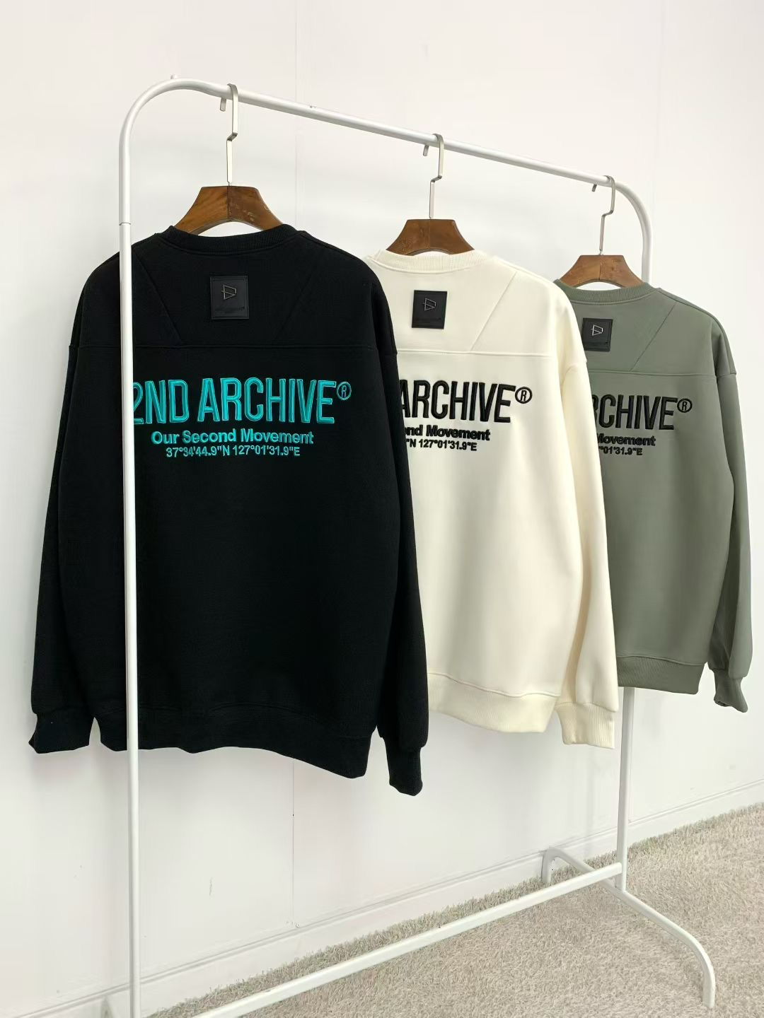 2ND ARCHIVE 正韓極簡中性風寬鬆大學T 黑/奶油白/軍綠