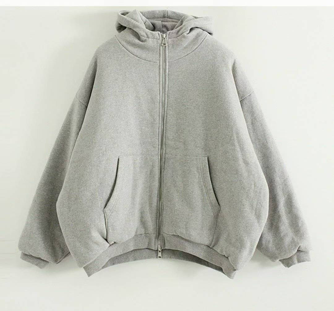 正韓厚磅寬鬆大輪廓連帽外套|灰/黑 F
