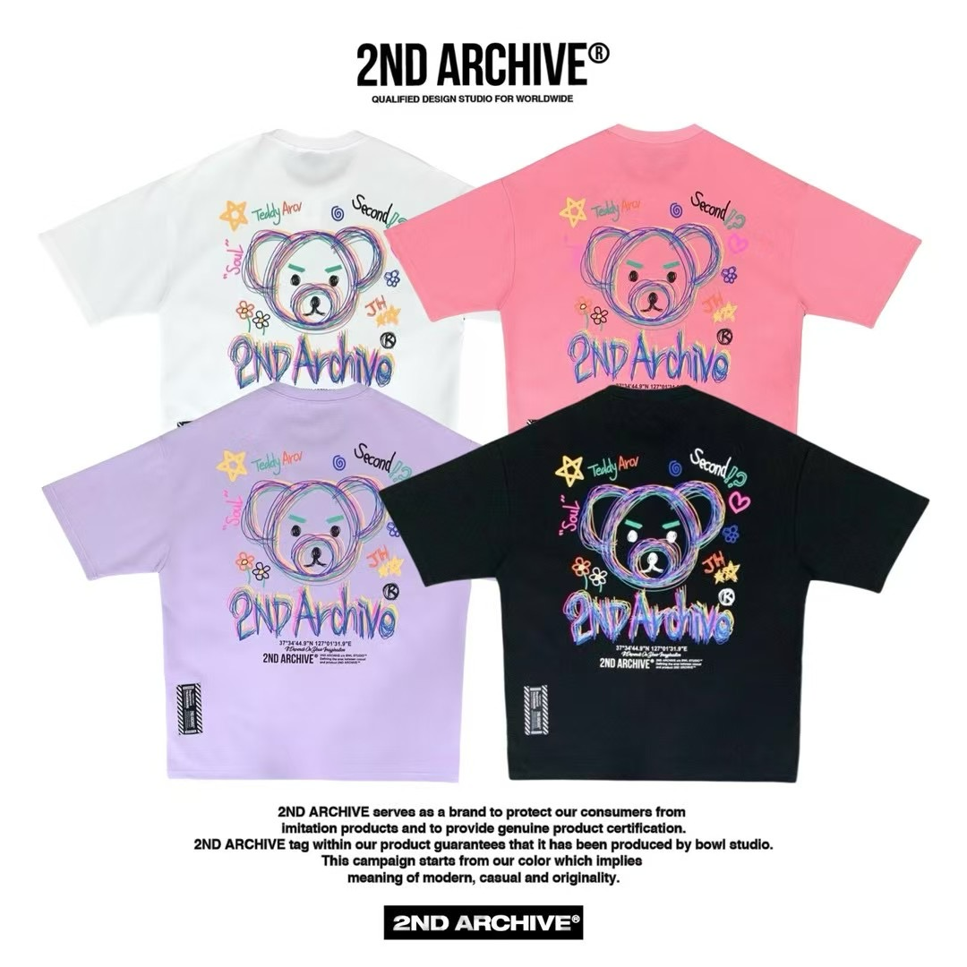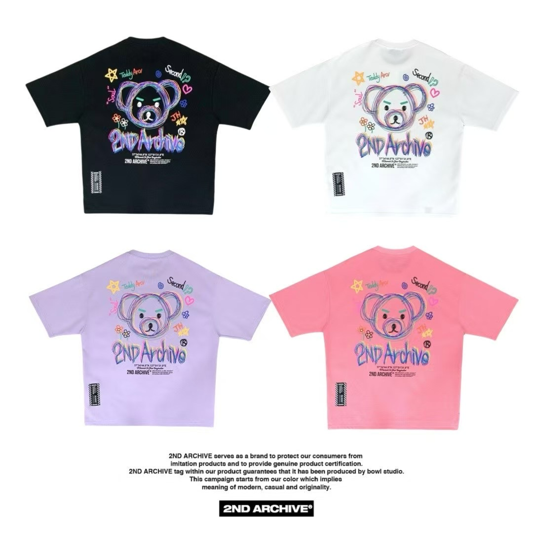 正韓街頭熊熊彩繪設計款寬鬆T恤 韓國潮牌 2ND ARCHIVE (白/粉/紫/黑)