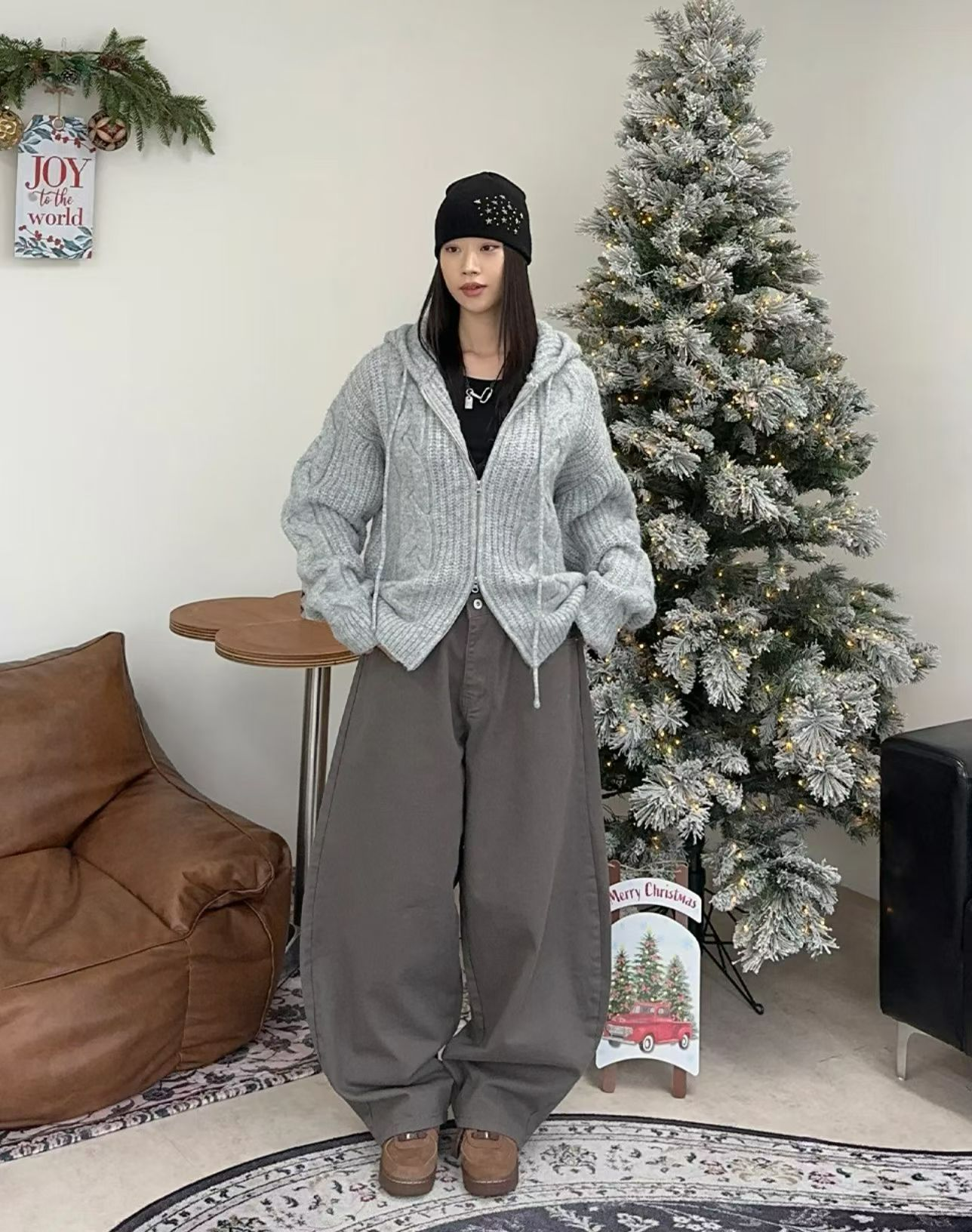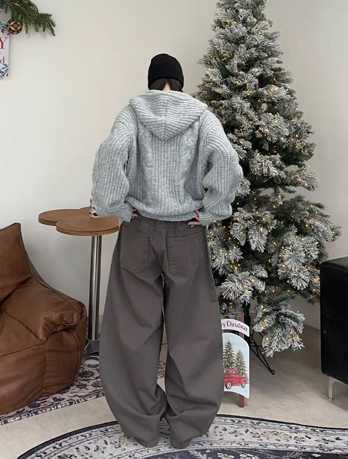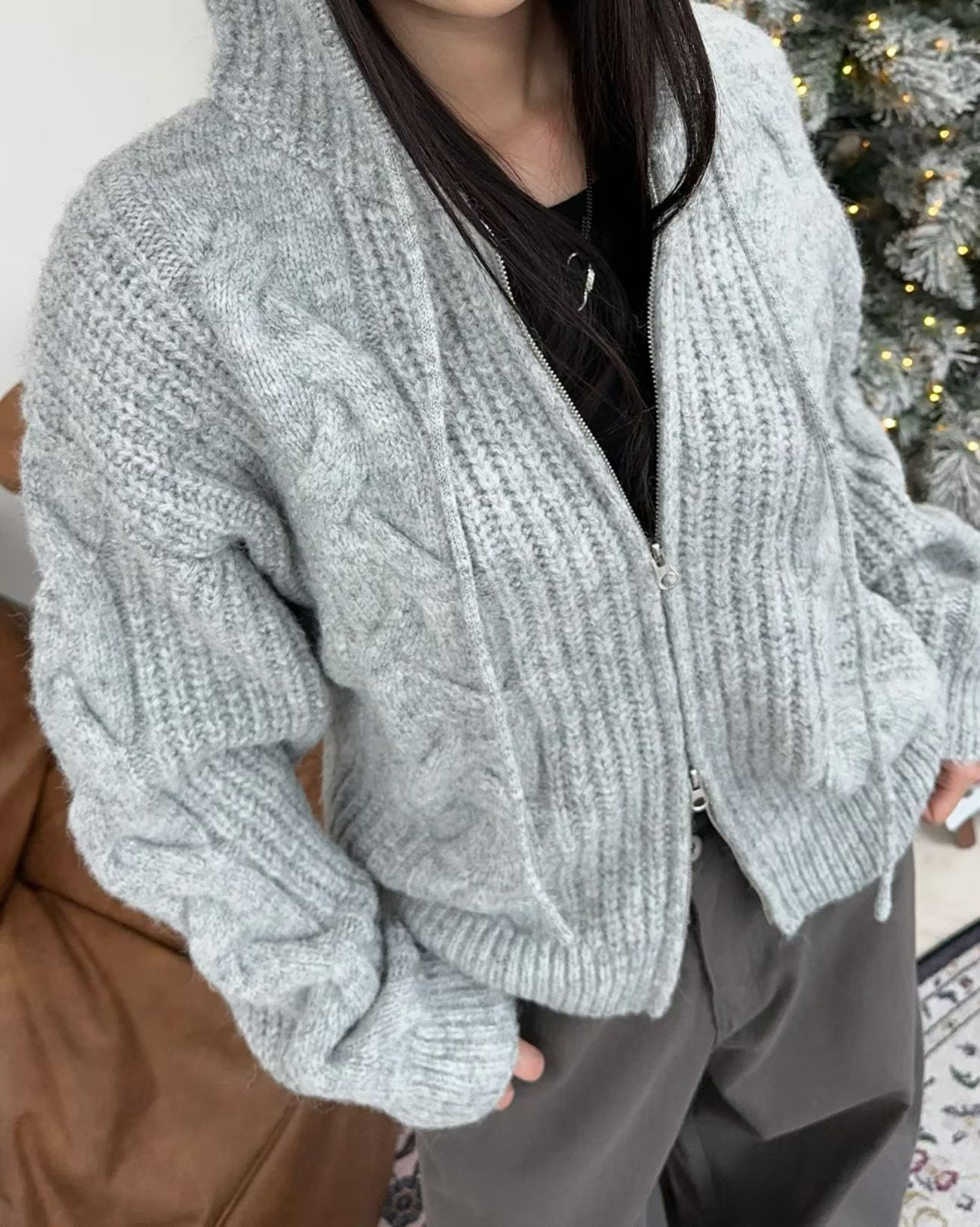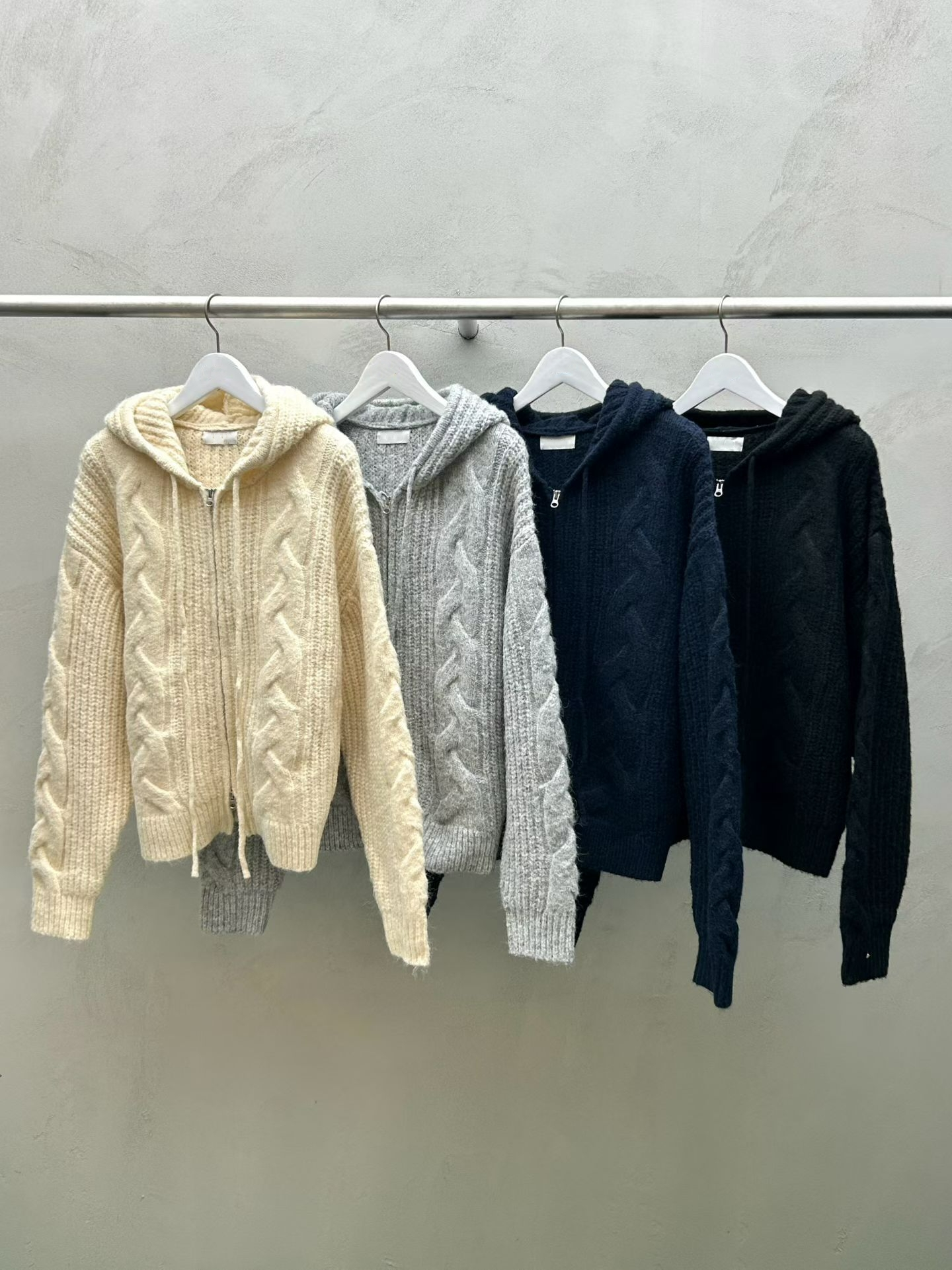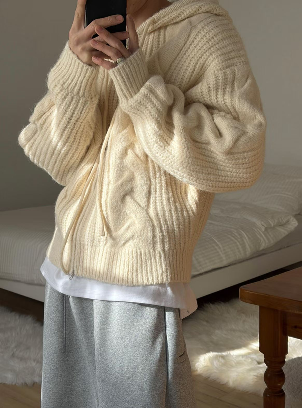 厚實針織 × 立體麻花 × 寬鬆連帽。