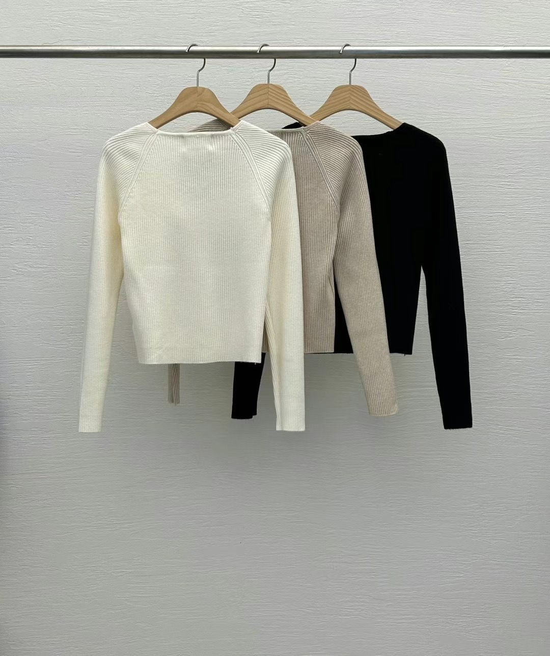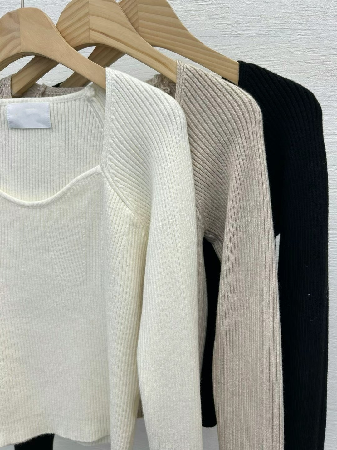 【🇰🇷現貨】正韓方領貼身針織上衣 黑