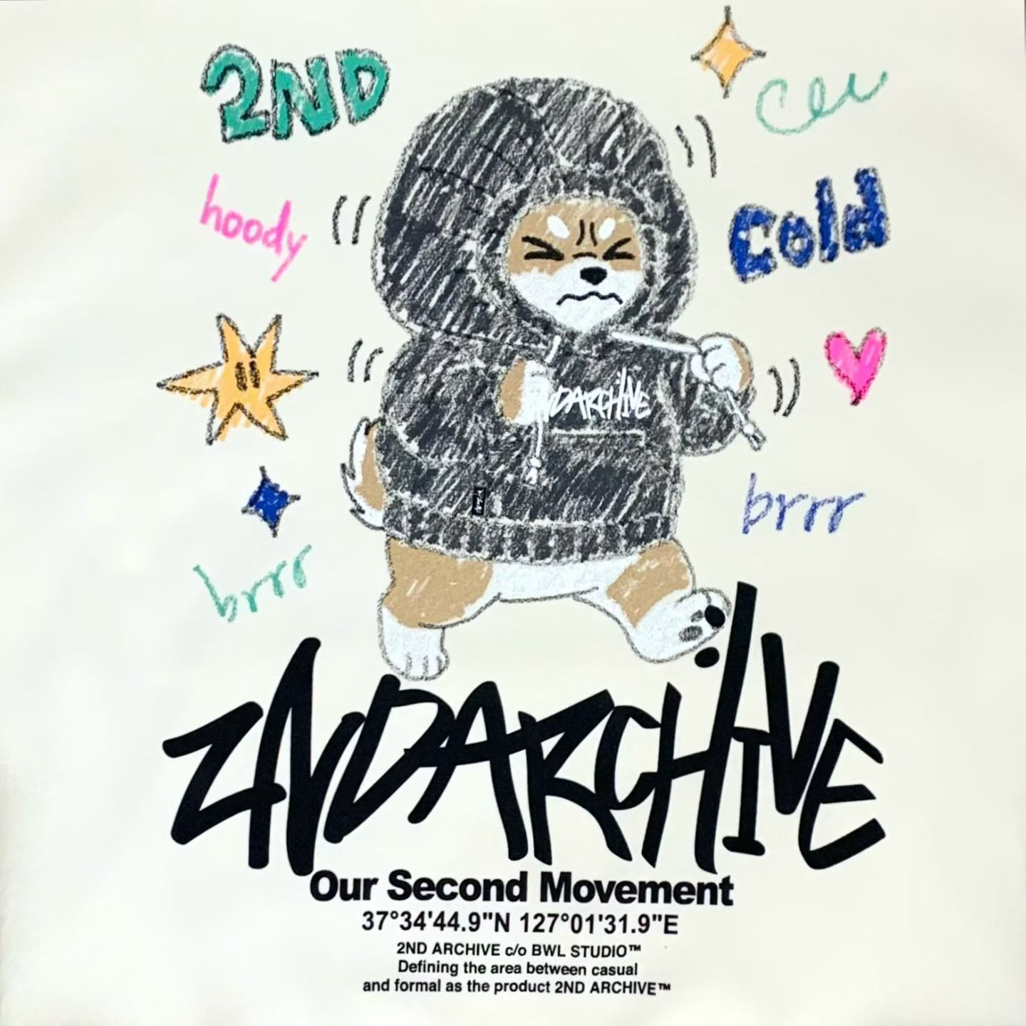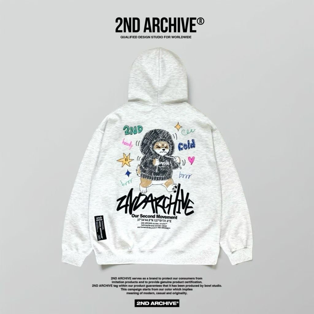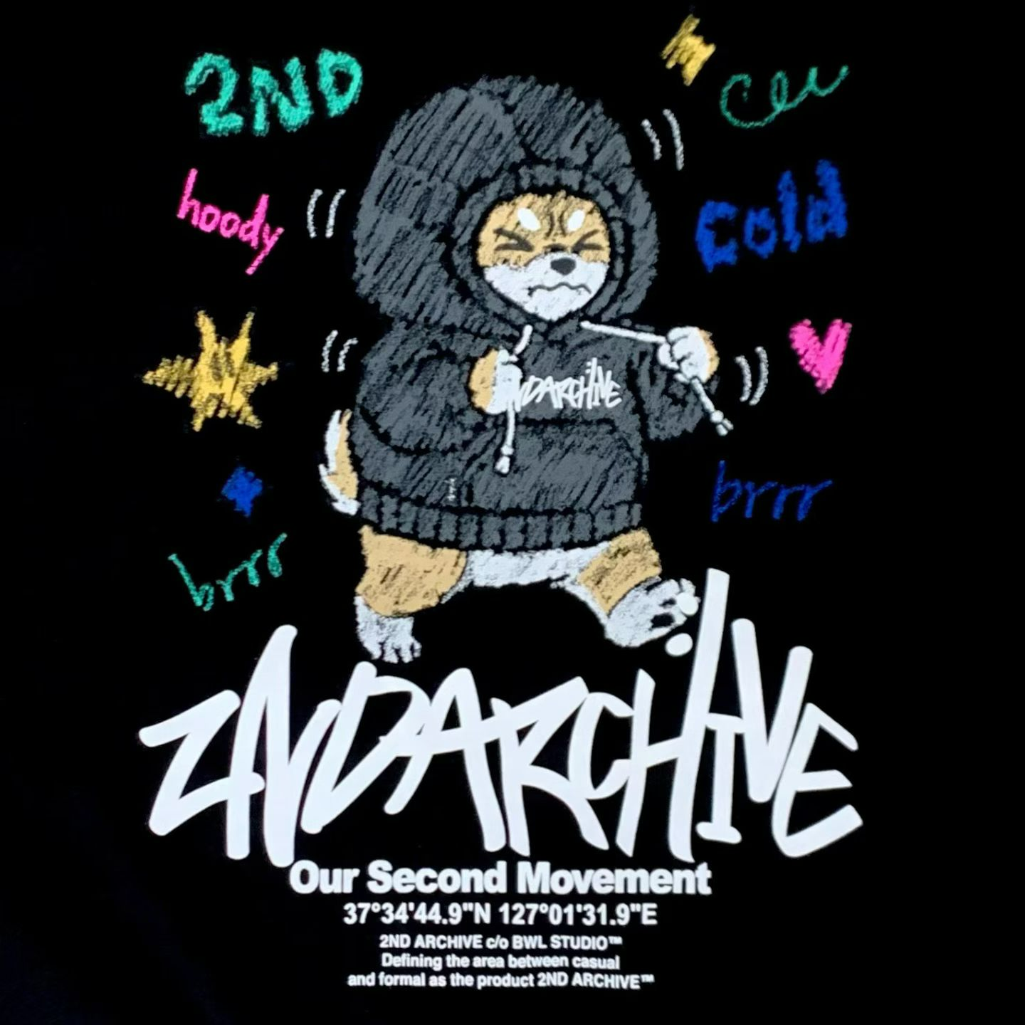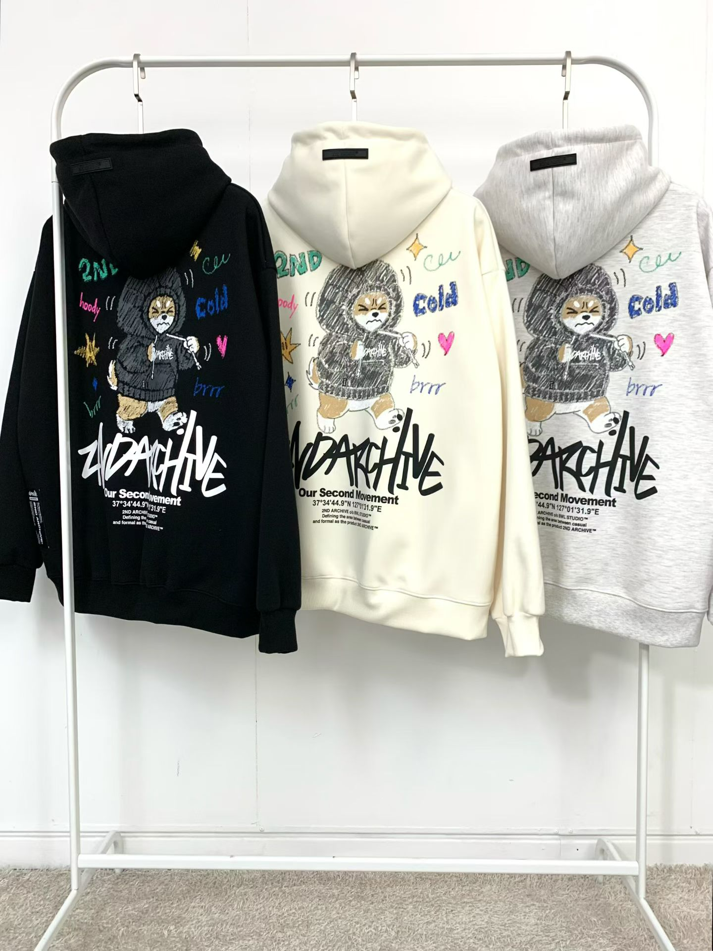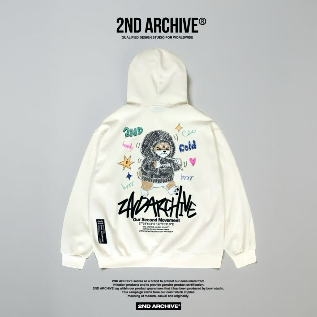 2ND ARCHIVE 正韓手繪柴犬連帽厚T 黑//奶油/麻灰